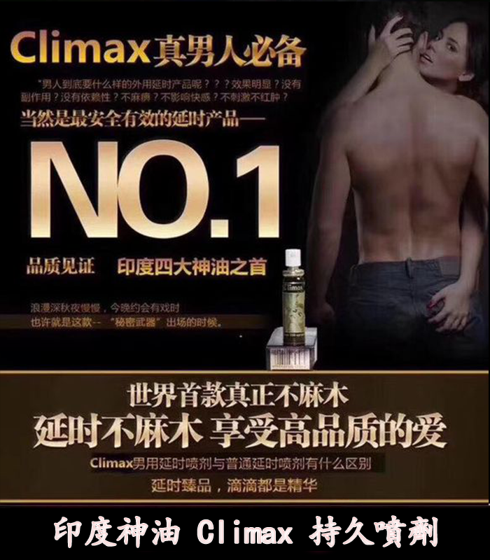 印度神油 Climax 持久噴劑 是專為男性設計的延時噴劑,讓您在性愛過程中更具持久力與自信,幫助改善早洩困擾,讓性愛體驗更加愉悅,享受更長久的親密關係。