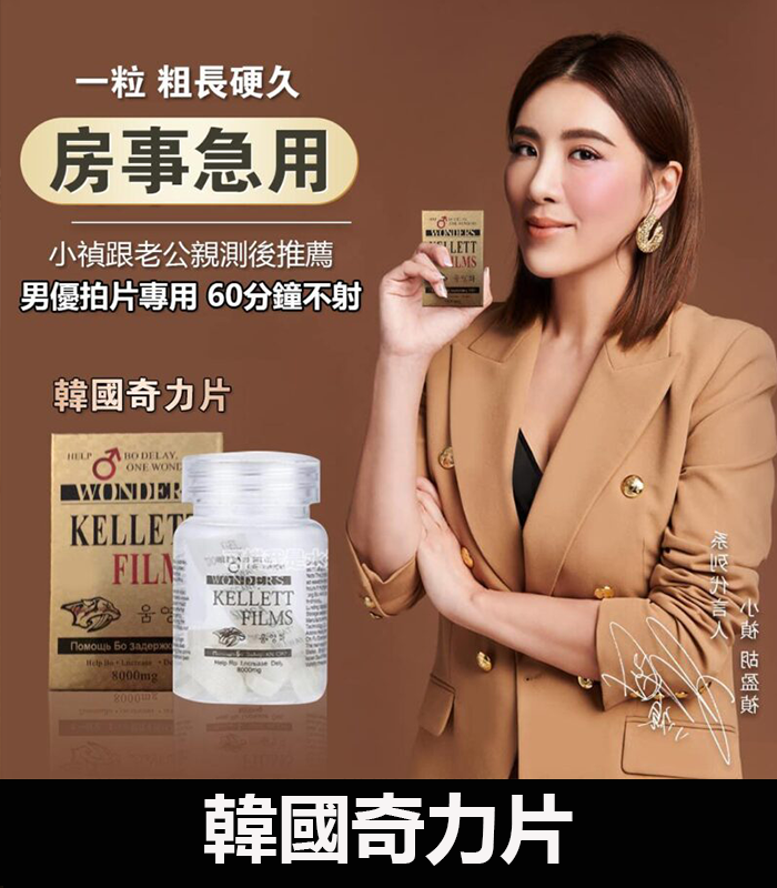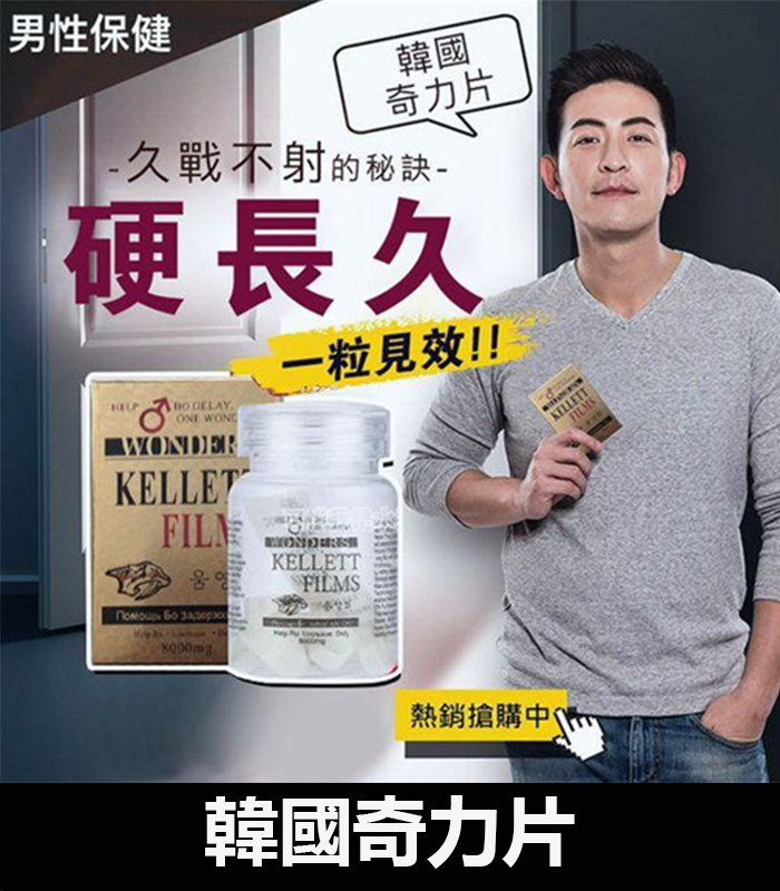 韓國奇力片KELLETT FILMS采用天然的植物原料,純植物萃取,調理男性性機能,從進二.次發育 ,無任何副作用和不適感;是一款可以長期用來保養男性性功能的一款產品;適合陽痿早洩、腰酸腿軟、失眠健忘、夜尿頻多者;工作壓力大、心理負擔重引起的性您低下、精力不佳、性生活時間短暫者、 藥物性陽痿、性功能低下者;老年性激素產生和分泌能力降低、性功能減退、體虛盜汗易疲勞者。