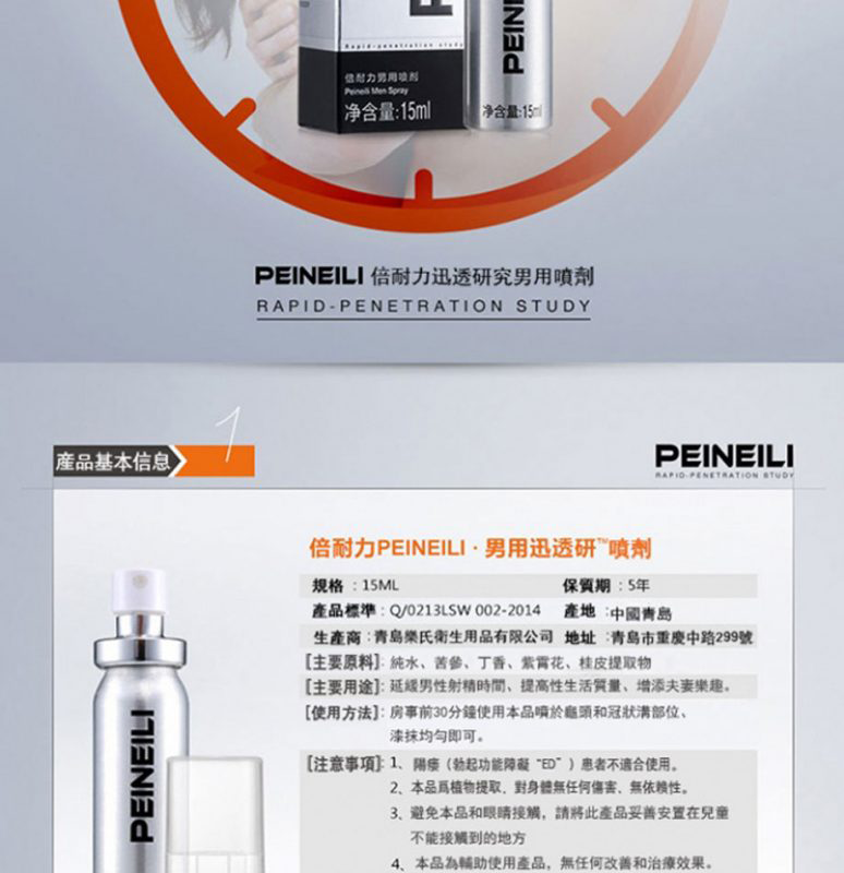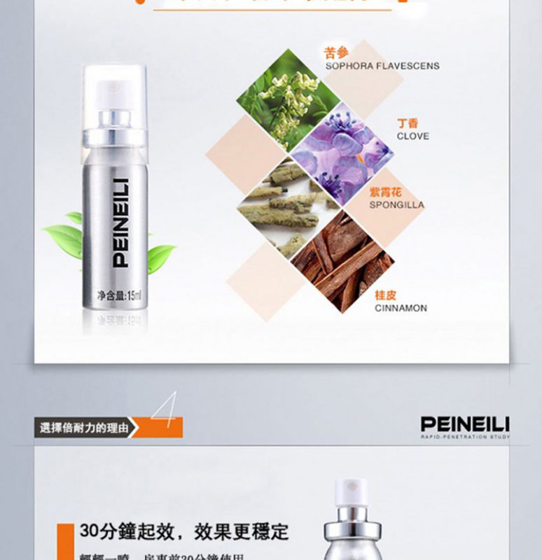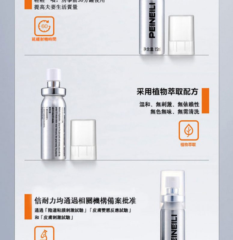 首頁 商品列表 持久液噴劑 倍耐力 PEINEILI 男士持久噴霧 – 延時提升 15ml外用丨原廠正品
