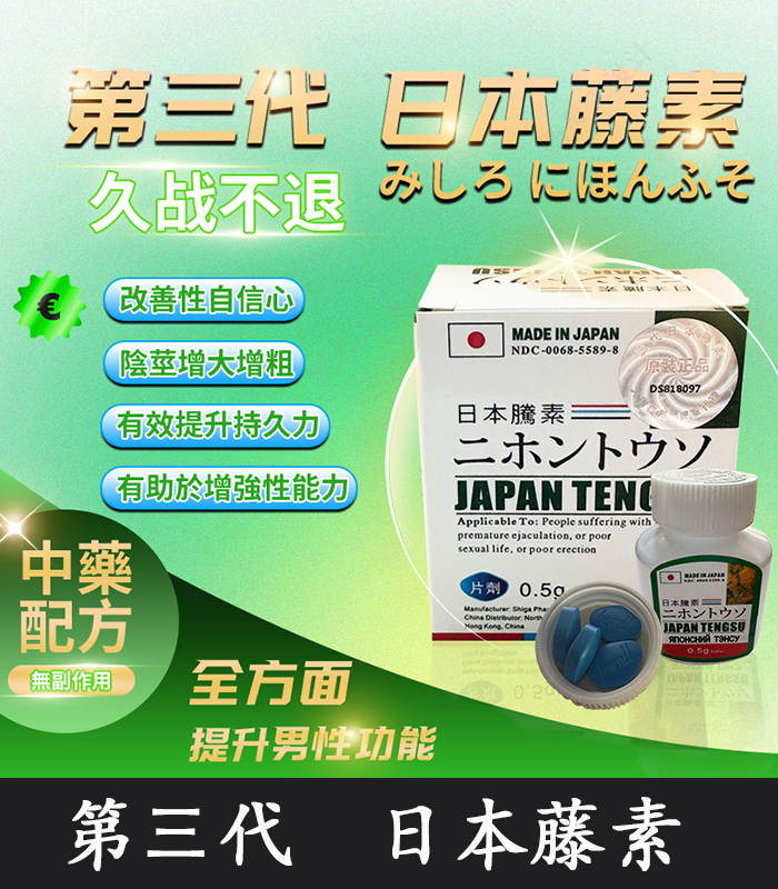 日本藤素(Japan Tengsu)是一款結合現代科技與傳統草本智慧的男性保健配方,專為改善性功能障礙與延緩性衰老而研製。其主要功效涵蓋以下幾大面向: