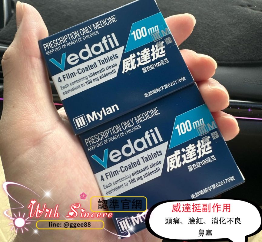 - 劑量建議:建議在性行為前約60至90分鐘服用一顆威達挺膜衣錠 Vedafil。根據個人對藥物的反應,可以調整50mg劑量,但每日最多服用一次,且不可超過建議劑量。